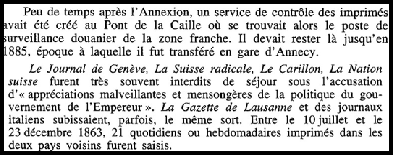 Dès 1860, non seulement les douaniers ont pour mission de contrôler l’identité des personnes et des marchandises mais également de réglementer la diffusion de journaux dont certains étaient interdits.