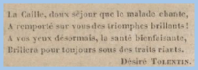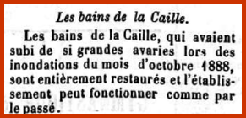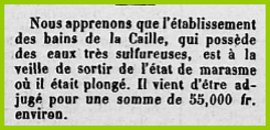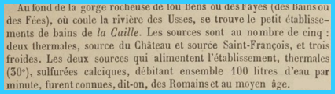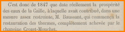 Texte extrait de la page 65 de l’ouvrage La caille son établissement thermal de Paul Collet édité en 1853