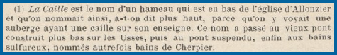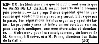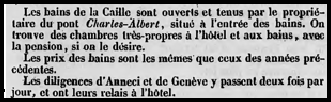 Texte extrait de la page 23 de l’ouvrage La Caille son établissement thermal son pont et ses environs de Paul Collet publié en 1853 (source Gallica-