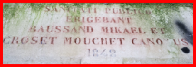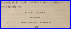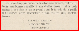 Inscription en latin sur le bâtiment des anciens bains en l’honneur des fondateurs, Michel Baussand en 1825 et du chanoine Paul Bernard Croset-