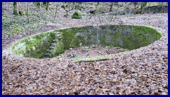 Le bâtiment des bains après 1914 (source Delcampe) et les ruines de ce même bâtiment Les Galeries photographiées le 15 février 2023 (MT Buda)