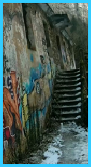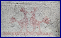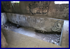 La piscine intérieure est actuellement très dégradée quelques dessins subsistent encore sur le sol.