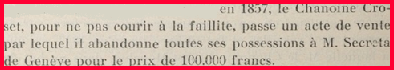 Article extrait de la page 2 du journal l’Indicateur de la Savoie du 6 octobre 1888