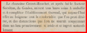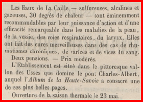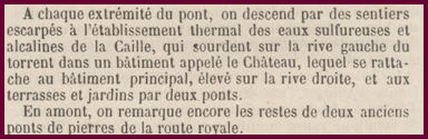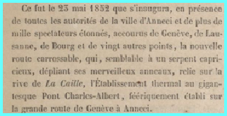 Texte extrait des pages 25 et 26 de l’ouvrage La Caille son établissement thermal son pont et ses environs de Paul Collet édité en 1853 (source Gallica-