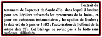 Extrait de la page 276 de l’ouvrage Mémoires et Documents par la Société d’Histoire et d’Archéologie de Genève, tome III édité en 1844 (source bookgoogle.fr)