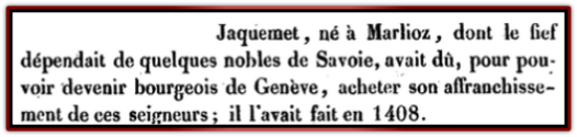 Ouvrage Mémoires et documents par la Société d’Histoire et d’Archéologie de Genève, tome III, page 362 (source bookgoogle.fr)