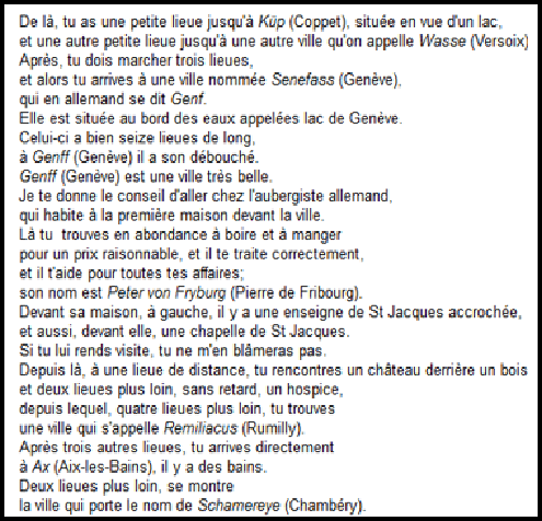 Quelques explications sont nécessaires pour comprendre le chemin à parcourir depuis la France car certains lieux ne sont pas explicitement nommés.