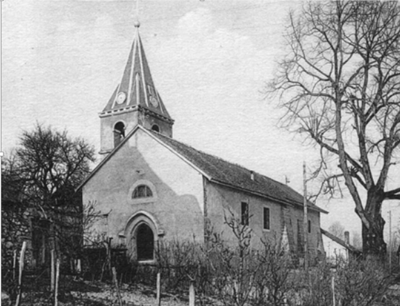 L’église avec l’ancien clocher détruit par la foudre le 8 juin 1924