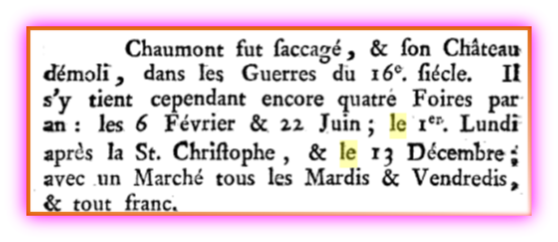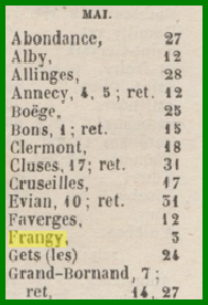 La foire de Frangy qui est désormais organisée le 8 mai existe étonnamment depuis fort longtemps. La plus ancienne information que j’ai pu retrouver sur ce sujet se trouve dans l’ouvrage ci-