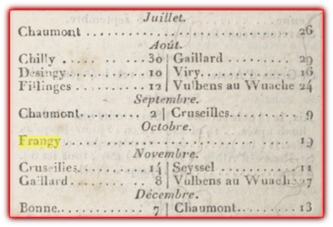 Le 19 octobre de la même année se tiendra également à Frangy la foire d’automne.
