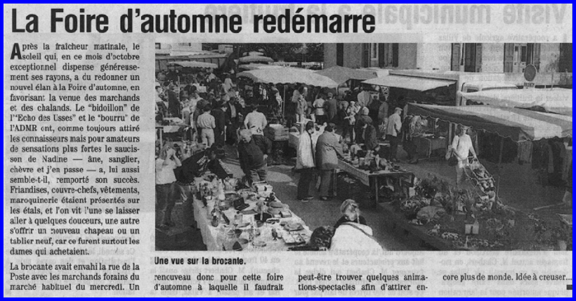 En 2001, un autre article sur la foire d’automne qui se déroule alors le 20 octobre.
