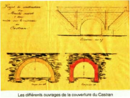 Le pont Bastian sera détruit en 1865 lors de l’exécution des travaux de couverture du Castran et de la construction de la Grenette (marché couvert).