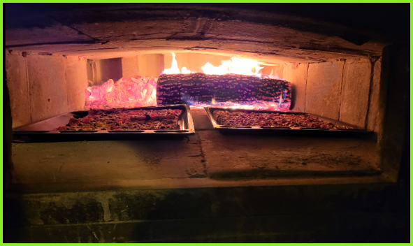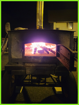 C’est toujours Marc qui s’occupe du four à bois et les premières pizzas sont prêtes.
