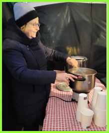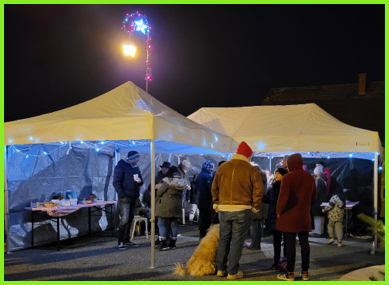 En ce début de soirée du 22 décembre 2025 c’est au tour de la municipalité d’offrir une collation aux habitants Un vent glacial nous accompagne sur le parvis de la mairie où des bâches de protection ont été installées.