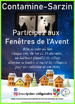 La coutume des fenêtres de l’Avent est assez récente et il semblerait qu’elle se soit imposée en Suisse dans les années 1980. Dans notre village c’est à partir de 2023 que l’association Les Amis de Contamine-Sarzin a mis en place cette tradition afin de créer des liens entre les habitants.
