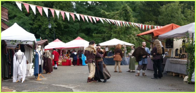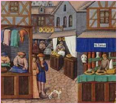 Ci-contre une reproduction d’une rue marchande au moyen-âge
