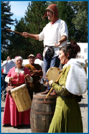 Un peu plus loin la compagnie d’animation l’Esbaudye nous invite à nous divertir en musique avec Dame Cousine, Damoiselle Elodie et