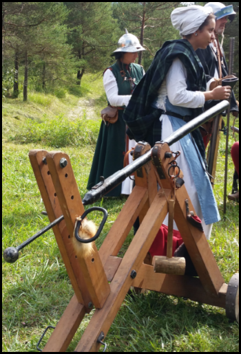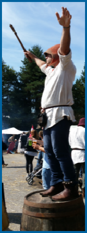 Dimanche matin alors que le soleil est enfin revenu, le public est accueilli par l’odeur et le bruit de la poudre. Cette arme à feu basée sur l’explosion de la poudre noire nous est présentée par la troupe l’Herpaille de Saint-Martin.