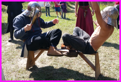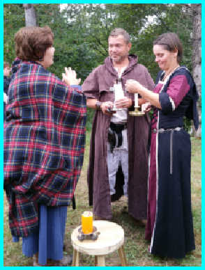 Après cette belle démonstration de force, le public assiste à un mariage celte célébré en plein air par un druide ou une prêtresse à l’intérieur d’un cercle tracé au sol dans le sens des aiguilles d’une montre.