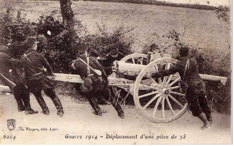 Le canon de 75 (calibre 75mm) a été inventé par le Commandant Deport et les premiers exemplaires ont été livrés à l’armée française en 1898. Au début de la guerre, la France en possédait près de 4000 exemplaires.
