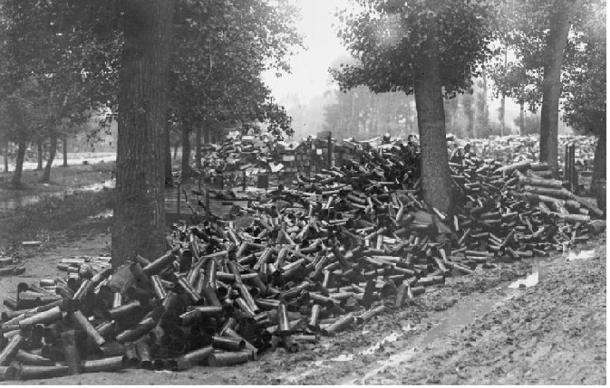 Douilles d’obus dans le secteur de la Somme (source Wikipédia.org)