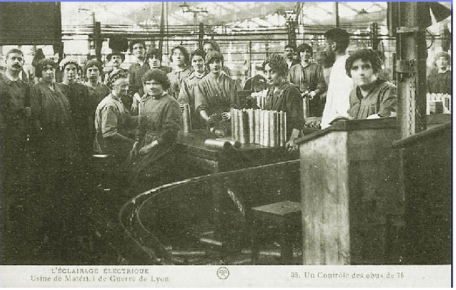 Durant la première guerre mondiale elles ont été appelées dans les usines d’armements en dernier recours, après les civils, les hommes réformés et les coloniaux dès 1915. Près de 420’000 ouvrières travailleront jusqu’à l’épuisement 10 à 14h00 de jour comme de nuit et tous les jours de la semaine.