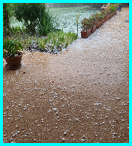 Et nous voici arrivés à la journée fatidique du lundi 24 juillet. Il est 15h20 et soudain un orage de grêle s’abat sur le village. Je vois les fruits de mes arbres tomber, les branches cassées et les feuilles hachées jonchent le sol. Je suis découragée.