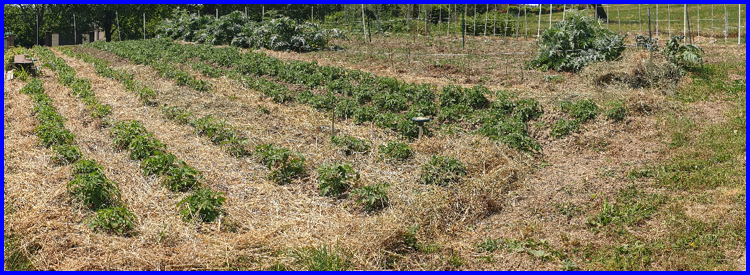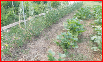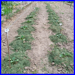 Le 8 juin paillage complet du potager avec de l’herbe séchée du jardin. Ce paillage protecteur limite l’évaporation et permet de réduire l’arrosage.
