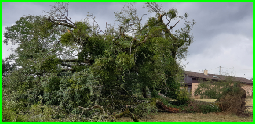 La toiture de la ferme de mon voisin a été éventrée à plusieurs endroits, tous ses anciens arbres (poirier et pruniers) ont été déracinés. Dans mon potager il ne reste plus rien.