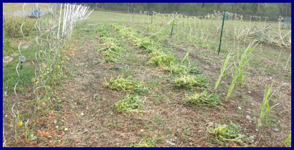 Les premières courges sont récoltées sous la pluie le 10 novembre mais beaucoup sont malheureusement très abimées mettant en péril leur conservation. Quant aux dernières tomates je les récolte le 21 novembre.