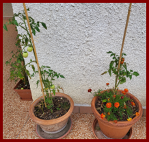 Les tomates Cherry, la Marmande cultivées en pots et les poivons le 9 juin 2023