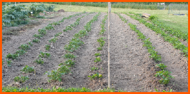 Les plants de pommes de terre plantés les 2 et 3 mai 2023 (jours racines) grandissent rapidement. Je vais devoir pailler les allées car la mauvaise herbe se répand inexorablement.