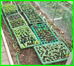 Comme le temps est relativement clément en ce mois de mars, je débute les semis de tomates et de poivrons à l’intérieur de la serre le 15 mars.