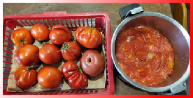 Et le 29 août, mon voisin Fernand m'apporte de délicieuses tomates pour me permettre de compléter les miennes et réaliser des coulis.