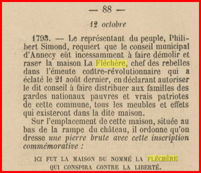 Le 12 octobre 1793 le conseil municipal d’Annecy décidera de faire vendre tous les biens de François-