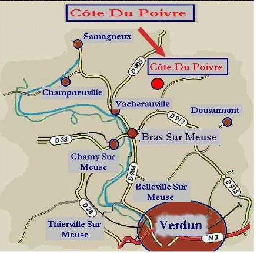 Le 21 février 1916 marque le début de la bataille de Verdun. Louvemont Côte du Poivre, situé sur le secteur de Verdun, sera perdu par les troupes françaises le 24 février 1916 et repris le 15 décembre 1916. Il disparaîtra totalement sous l’archarnement des pilonnages des obus français et allemands. Cette commnue ne possède aucun habitant. C’est l’un des neuf villages français détruits durant la première guerre mondiale qui n’a jamais été reconstruit. Déclaré « village mort pour la France » à la fin des hostilités, il fut décidé de conserver cette commune en mémoire des évènements qui s’y déroulèrent. La commune est aujoud’hui administrée par un conseil de trois personnes désignées par le préfet de la Meuse (source Wikipédia).
