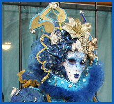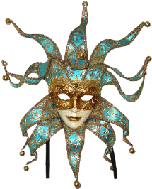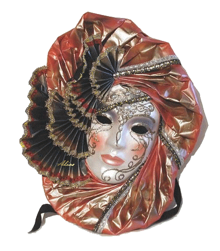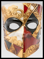 Exemples d’une Bauta (pour les hommes) et d’un loup (pour les femmes)