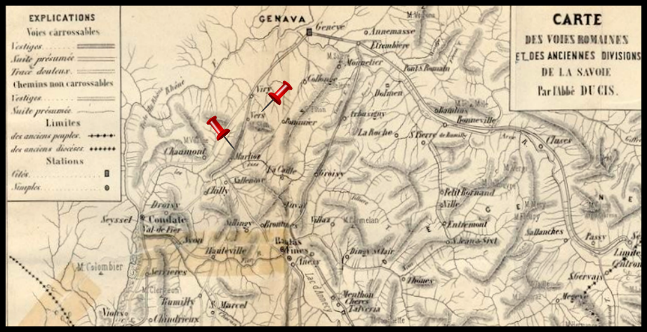 Carte extraite de la page 149 de l’ouvrage Mémoire sur les voies romaines de la Savoie par Claude-