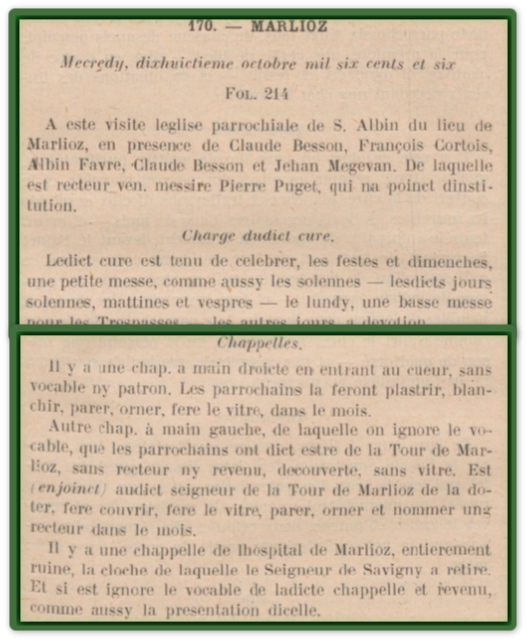 Il donne l’administration de l’hôpital au curé de Marlioz et aux syndics, le recteur de la chapelle devant habiter dans l’hôpital. Le premier recteur est François Binand né à Contamine et prêtre du diocèse de Genève.