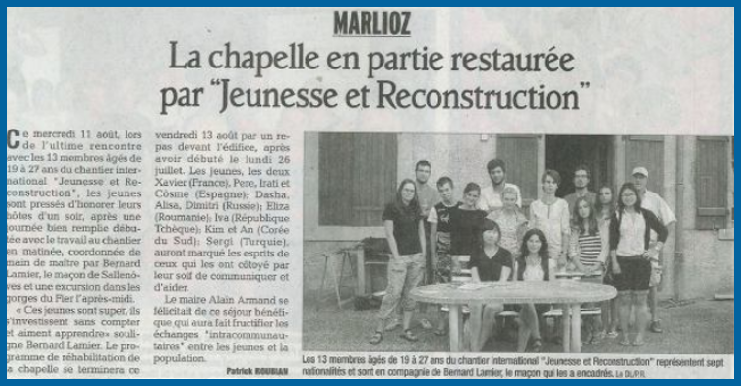 Si la chapelle en ruine a pu être sauvée, plus rien ne subsiste de l’Hôpital. C’est donc en 2012 que va renaître la chapelle de Marlioz et le 20 octobre se déroule l’inauguration tant attendue de ce bâtiment restauré.