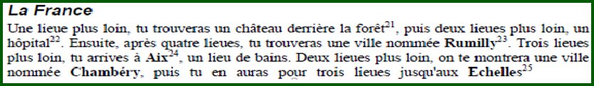 Quelques explications sont nécessaires pour comprendre le chemin à parcourir depuis la France car certains lieux ne sont pas explicitement nommés.