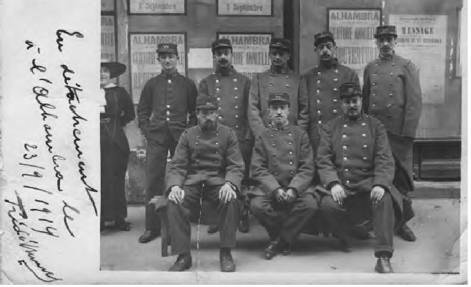 Cette photo datée du 23 septembre 1914 représente plusieurs soldats en détachement à l’Alhambra