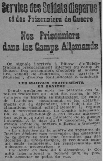 En octobre 1914, après les premiers affrontements, au cours desquels beaucoup de combattants ont été capturés, le CICR (Comité International de la Croix Rouge) a ouvert son Agence internationale à Genève.
