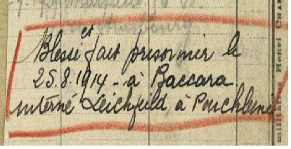 Extrait fiche militaire de Joseph Gay (source Archives Départementales de la Haute-