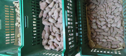 Quant aux pommes de terre, elles sont stockées dans des bacs à l’abri de la lumière