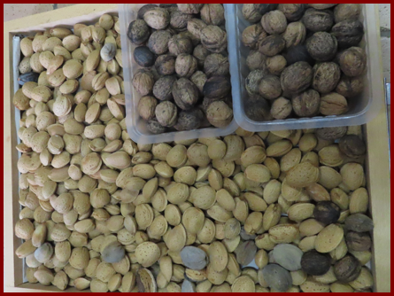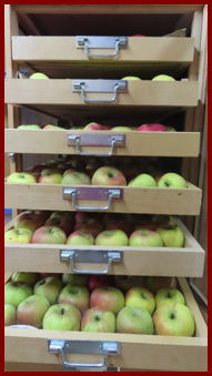 Les pommes à consommer jusqu’en avril 2022 sont soigneusement rangées sur des plateaux dans le légumier et cohabitent avec les noix et les amandes.