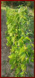 Les haricots plats à rames et les verveines ainsi qu’une petite récolte de courgettes et pâtissons (photos MT Buda 25 juillet 2021)