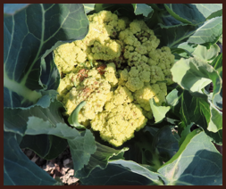 Le 1er mars par une belle journée ensoleillée je cueille les derniers choux Romanesco qui ont passé une partie de l’hiver dans le potager (photo MT Buda).