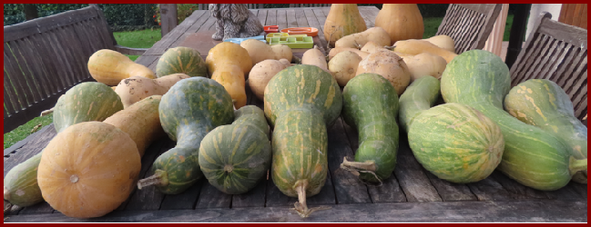 A mon retour de vacances fin septembre, il est presque temps de récolter les courges de Nice et les Butternut qui se retrouvent presque seules dans le potager.