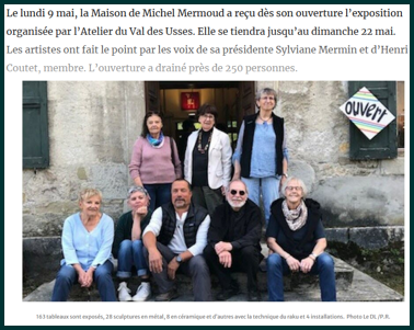 Cette partie de bâtiment qui est actuellement inoccupée a permis, grâce à l’intervention de Sylviane, d’abriter une magnifique exposition réalisée par les membres de l’Atelier du Val des Usses.